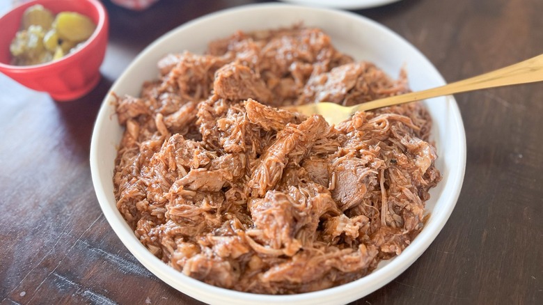 Sazona la carne con media cucharadita de sal, junto con la pimienta, la cebolla en polvo, el ajo en polvo y la salsa Worcestershire para potenciar su sabor. Mientras la carne se cocina, utiliza una cuchara o espátula para desmenuzarla y separarla, asegurando una cocción uniforme. Cuando la carne comience a dorarse y esté casi cocida, añade una cucharada de la salmuera del frasco de pimientos bananeros. Johnson explica: “Añadir un poco de la salmuera de un frasco de pimientos bananeros le da el toque ácido perfecto a la carne. Si no los tienes a mano, podrías sustituirlo por el ‘jugo’ de un frasco de pimientos dulces o incluso de pepinillos encurtidos”. Este ingrediente secreto eleva el perfil de sabor de la carne, dándole un toque inesperado y delicioso.